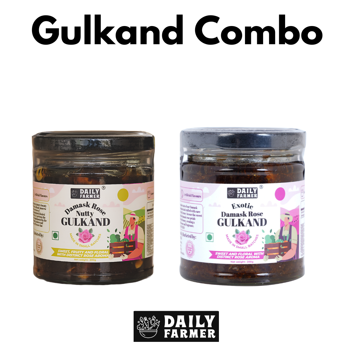 Indulge in the luxurious flavors of Daily Farmer’s Damask Rose Gulkand and Nutty Gulkand Combo, crafted from handpicked Damask rose petals and the finest ingredients. This exquisite duo offers a perfect blend of taste and wellness.