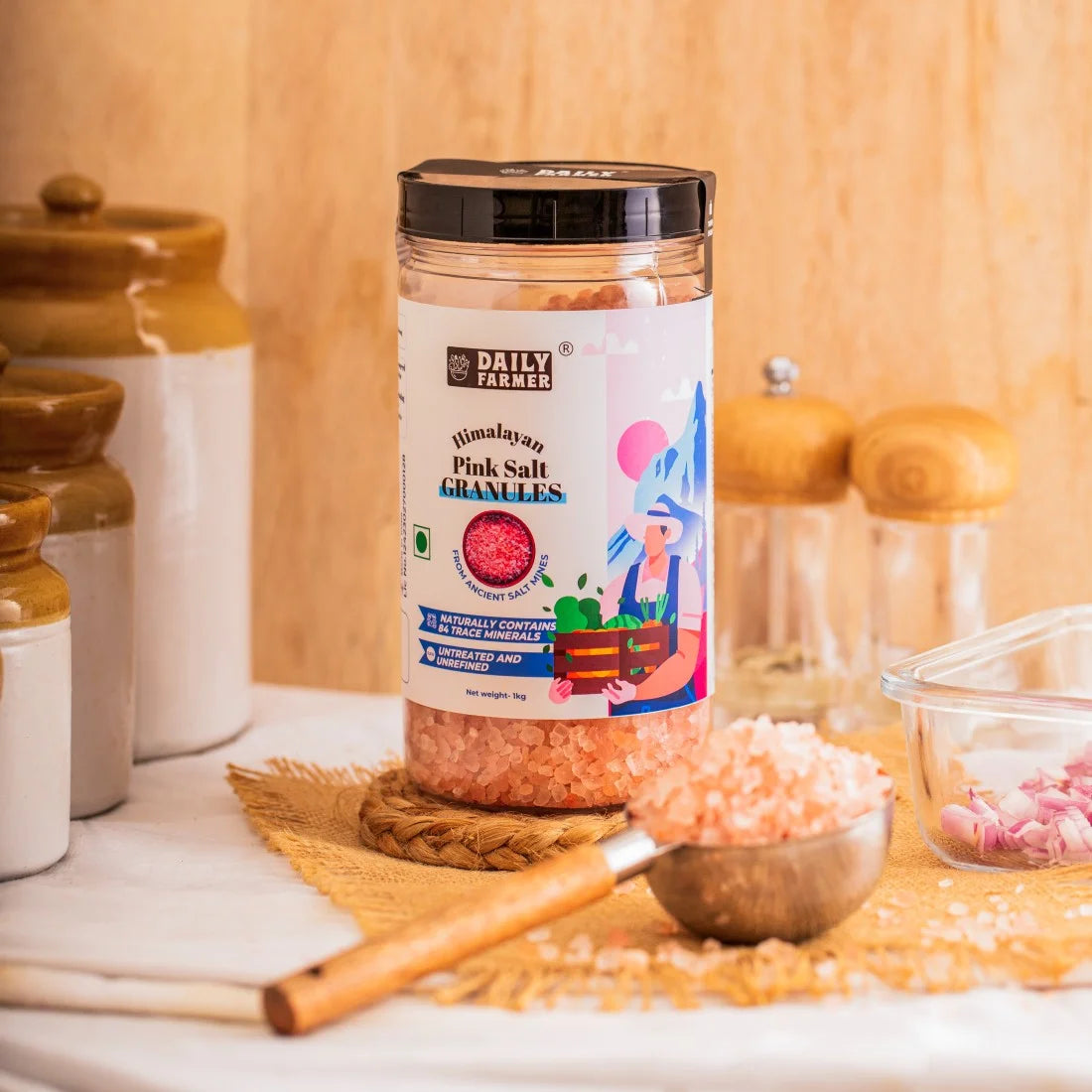 Enhance your culinary creations and wellness routine with Daily Farmer Himalayan Pink Salt Granules. Sourced directly from the pristine foothills of the Himalayas, our pink salt granules are rich in essential minerals and provide a pure, natural flavour that elevates any dish. Known for their beautiful pink hue and numerous health benefits, these salt granules are a must-have for any kitchen.