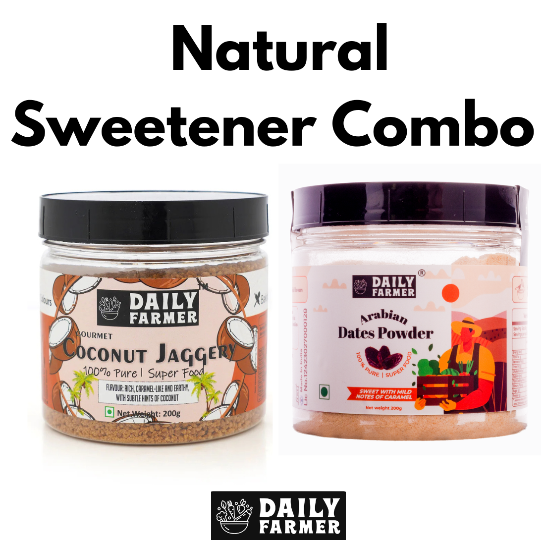 Upgrade to healthier, natural sweeteners with the Daily Farmer Coconut Jaggery & Dates Powder Combo today!